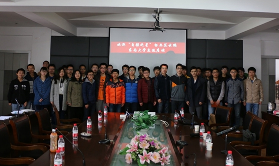 座谈最后,刘宗涛董世坤老师代表校团委、机械学院团委和生医学院团委向范云鹤同学赠送了的纪念品,范云鹤同学表示希望东大的同学可以到他的母校川大进行交流访问。