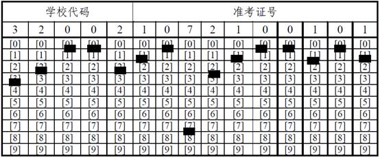 说明: 1、准考证号共十五位。前五位是学校代码。2、此为320021072100101示例图,请按实际准考证号正确填涂。3、填涂前请看清答题纸上的填涂说明。