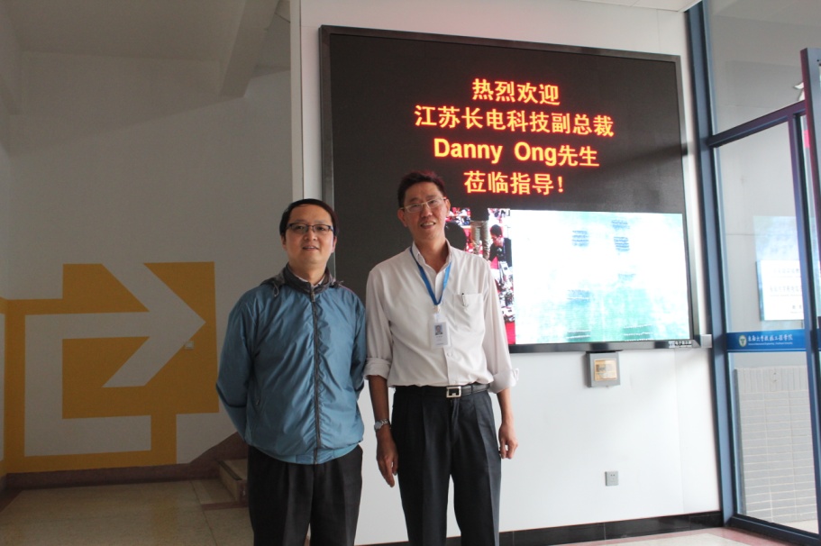 2016年10月14日下午3:30,应机械工程学院党委书记张志胜教授邀请,江苏长电科技股份有限公司副总裁Danny Ong先生莅临机械工程学院指导工作。