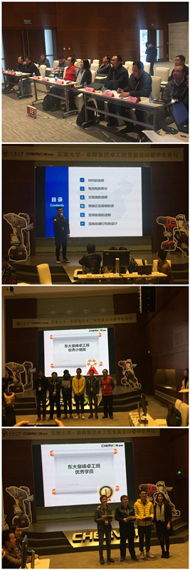 来自机械工程学院的15名大四学生分成三个组:求真继明博队、机械龙卷峰队、X-MAN队,经过车轮大战、齐心协力、争分夺秒、华山论剑四个环节的角逐,完美展示了东大学子的风彩。答辩结束后,评选出本届卓工班的优秀小组和优秀学员,并进行颁奖和毕业典礼仪式。最后,张志胜书记对本次的卓工班进行了总结,带领学员向泉峰集团及各位老师表达感谢,同时对学员表达了殷切的期望。