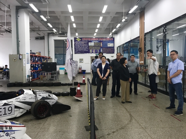 | 调研组听取方程式赛车队负责人介绍 |