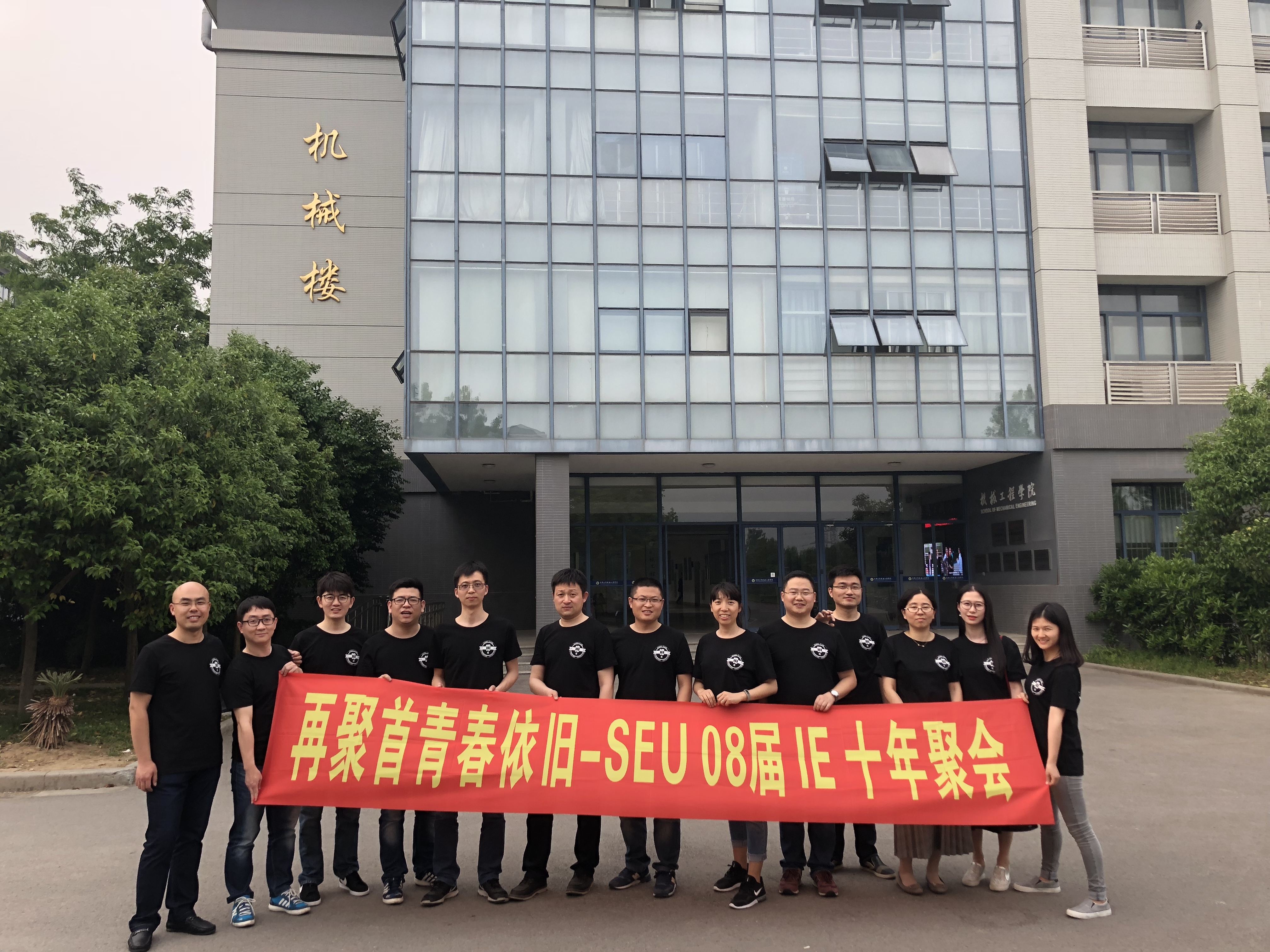 2018429日,026041班校友一行16人回母校聚会,庆祝毕业10周年。同学们漫步于大礼堂前、六朝松下、九曲桥畔,一起参观校史馆,重游紫金山,回忆当初、共叙友情。学院党委书记张志胜教授、工业工程系主任肖锋老师及设计系王海燕老师等热情接待了各位校友。