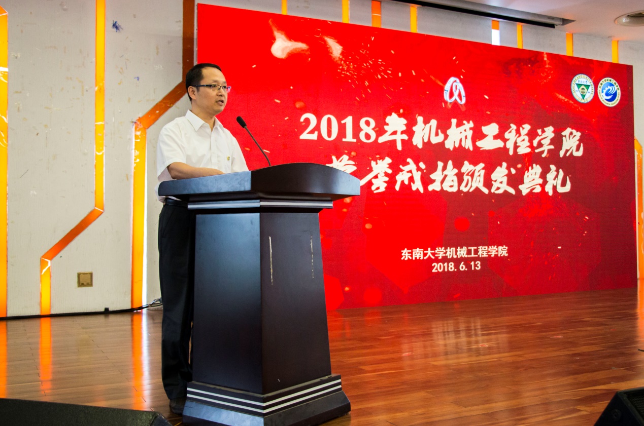 颁发典礼由机械工程学院党委书记张志胜主持。上海校友会领袖韩鹤鸣先生、退休教师徐志祥老师、东南大学国家大学科技园总经理贾方女士、埃斯顿自动化总经理王珏先生、扬州美达灌装机械有限公司董事长彭山宏先生、在职教授陈云飞副院长和原2014级辅导员刘宗涛应邀担任本次颁发典礼的嘉宾。参加颁发典礼的还有机械学院副院长殷国栋老师、党委副书记王斌老师、机械学院校友会付瑜老师、14级辅导员史红叶老师、17级辅导员柏硕老师,还有青年教师代表耿可可老师,14级同学最喜爱的老师陈敏华老师。