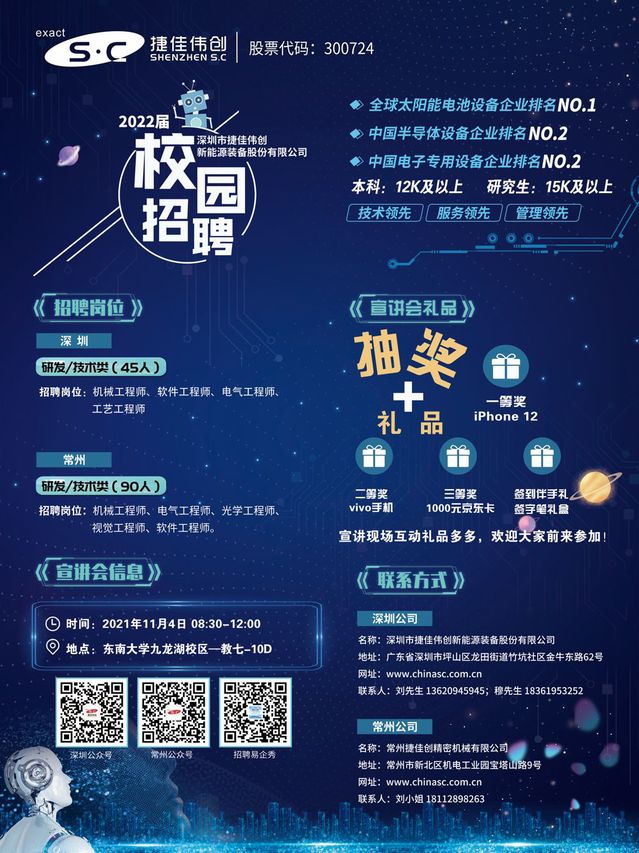 捷佳伟创集团2022届校招东南大学站