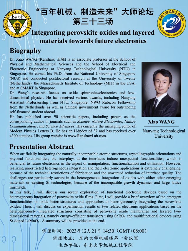 讲座地点: 东南大学机械楼第一会议室