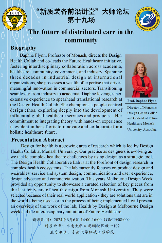 DaphneFlynn, Professor of Monash, directs the Design Health Collab and co-leads theFuture Healthcare initiative, fostering interdisciplinary collaboration acrossacademia, healthcare, community, government, and industry. Spanning threedecades in industrial design at international organizations, she possesses awealth of expertise that drives meaningful innovation in commercial sectors.Transitioning seamlessly from industry to academia, Daphne leverages herextensive experience to spearhead translational research at the Design HealthCollab. She champions a people-centred design ethos, exploring deeply into the development of influentialglobal healthcare services and products. Her commitment to integrating theory with hands-on experience is evidentin her efforts to innovate and collaborate for a holistic healthcare future.