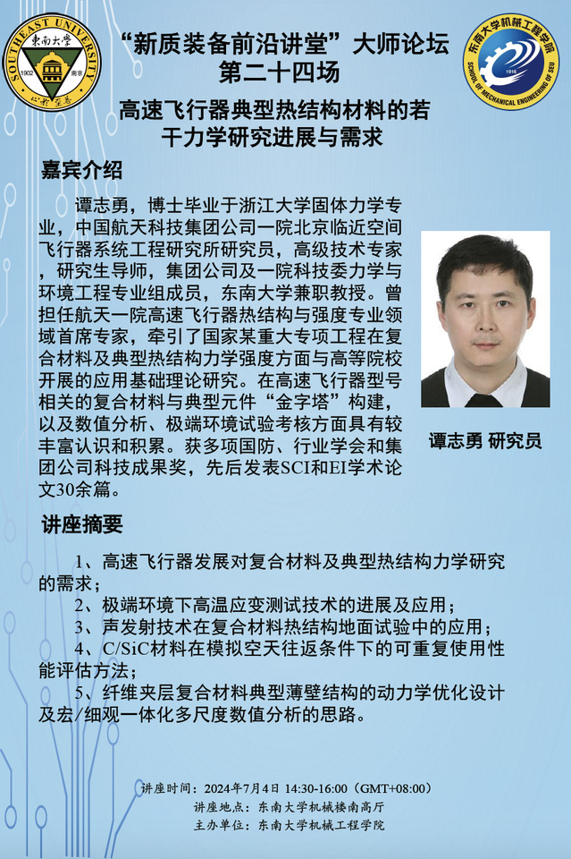 1、高速飞行器发展对复合材料及典型热结构力学研究的需求;