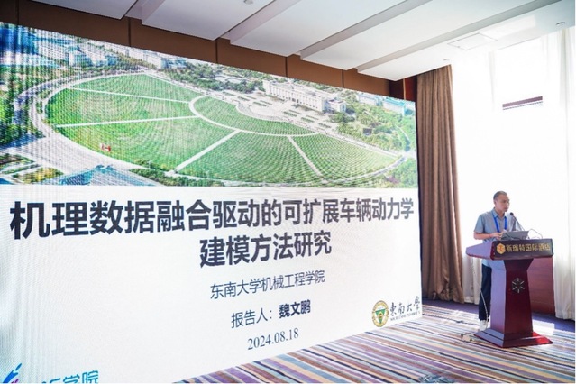 同时,本次论坛设置了6个分论坛,包括“精密与微纳制造技术前沿”、“多功能融合结构增材制造”、“机械系统动力学与装备智能运维”、“机构设计与机器人前沿技术”、“表面调控与涂层”以及“智能融合—AI 重塑轨道交通与智能网联汽车的颠覆性创新新生态”。其中,我院青年教师魏文鹏副研究员受分论坛“智能融合—AI 重塑轨道交通与智能网联汽车的颠覆性创新新生态”邀请并做主题报告,报告题目为《机理数据融合驱动的可扩展车辆动力学建模方法研究》,该报告聚焦于车辆动力学模型的基础建模理论,探讨了机理-数据融合驱动的数据高效、自适应度高、可解释性强的可扩展车辆动力学建模方法。