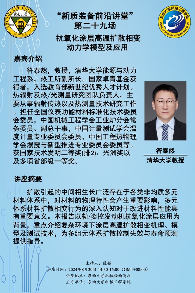 讲座地点:东南大学机械楼南高厅