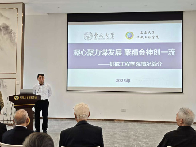 晨光初绽时,校友们陆续步入校友会堂三楼会议室。八时许,奚胜元校友执麦开场,以熟悉的声音唤醒尘封的记忆。机械工程学院主管科研与校友工作的副院长刘晓军教授作学院发展专题报告,以“凝心聚力谋发展,聚精会神创一流”为主题,系统呈现学院师资力量、学科布局、育人成果与发展规划。报告中着重解析了各专业前沿优势与最新科研突破,令校友们深感自豪。