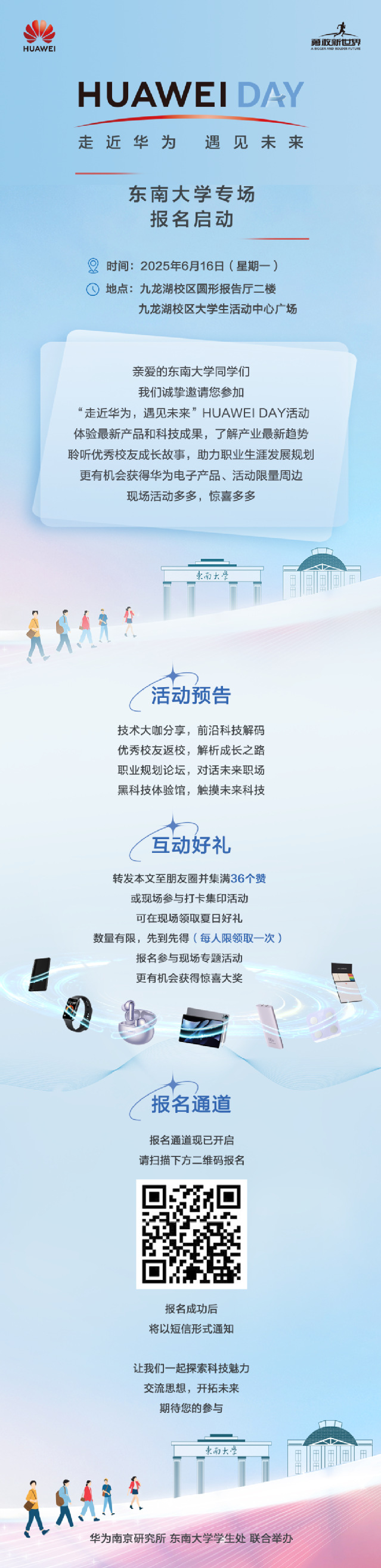走近华为,遇见未来,HUAWEI DAY走进东南大学,报名启动!