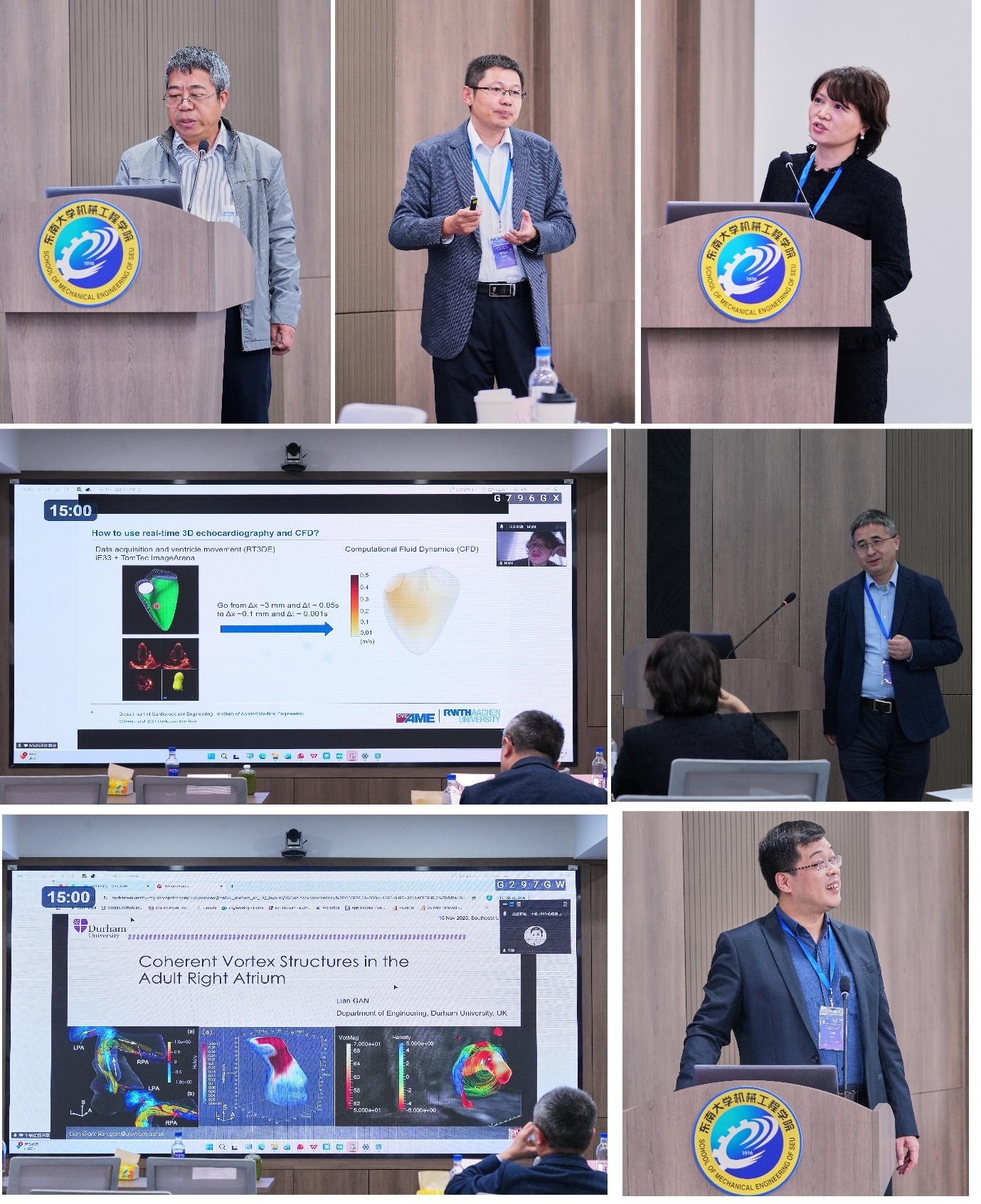 研讨会开幕式由北京航空航天大学邓小燕教授主持。江苏省力学学会副理事长、东南大学郭小明教授与学会生物力学专业委员会主任、国家级人才、常州大学生物医学工程与健康科学研究院院长邓林红教授分别从江苏省力学领域发展、生物力学专委会工作推进的角度,强调了心血管工程生物力学研究对医疗技术革新与民生健康的重要意义,肯定了东南大学近年来在该领域的进展,尤其是吴鹏教授团队近年来围绕人工心脏设计与评估取得的进展;一致认为本次研讨会汇聚国内外医工领域的专家学者顶尖智慧,将为江苏生物力学研究注入新动能。