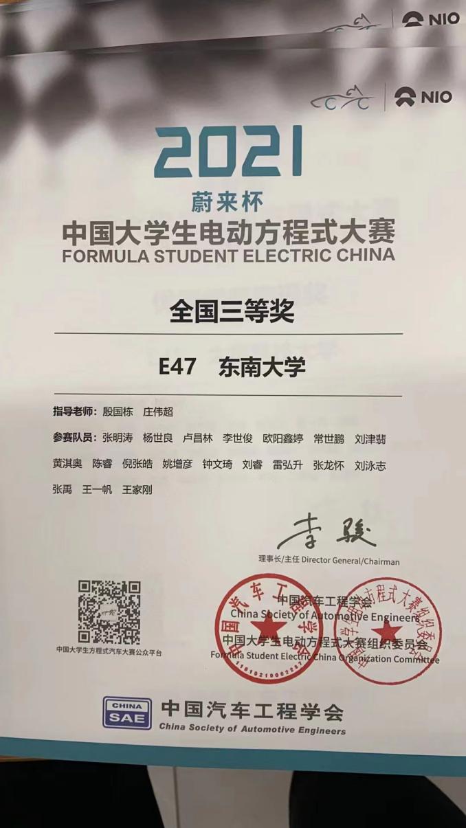 车队的成长离不开学校的支持。感谢东南大学校长办公室、教务处、保卫处、校团委、机械工程学院、工培中心等学校各部门的支持。感谢殷国栋、庄伟超、毕可东、王斌、范巧林等车队指导老师。