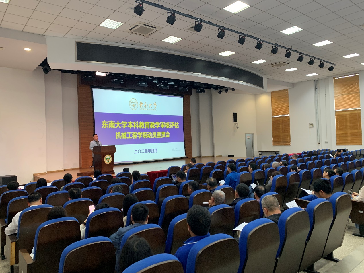 为进一步落实新一轮本科教育教学审核评估迎评工作,细化部署各项任务,2024年4月25日中午,机械工程学院本科教育教学审核评估动员宣贯会在东南大学九龙湖校区纪忠楼报告厅顺利召开。机械工程学院院长费庆国、党委副书记王斌、副院长毕可东、副院长陈震以及全体教职工参加动员宣贯会,会议由毕可东副院长主持。